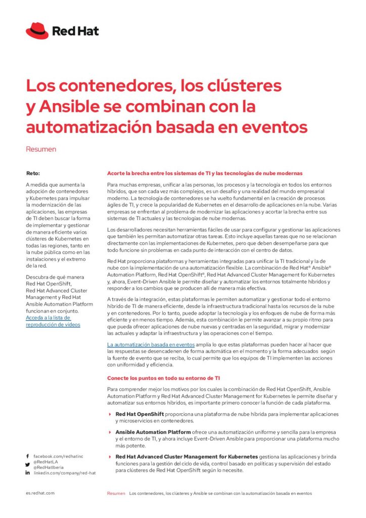 Los contenedores, los clústeres y Ansible se combinan con la automatización basada en eventos Desbloquee el poder de los entornos de TI híbridos con las soluciones de vanguardia de Red Hat. Este libro blanco profundiza en la integración estratégica de contenedores, clústeres y automatización de Ansible para optimizar y modernizar su infraestructura de TI. Puntos […]